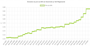 Le tarif règlementé du kWh a augmenté de 5% par an en moyenne sur une période de 18 ans (01/2007 – 01/2025). A ce rythme, il aura doublé dans 20 ans et pas sûr que les salaires augmentent dans les mêmes proportions… Installer des panneaux photovoltaïques maintenant vous permet de bénéficier d’une énergie renouvelable et gratuite.