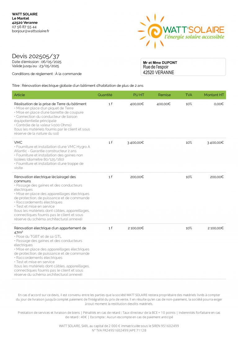 La qualité de la visite technique nous permet de vous transmettre un devis de rénovation électrique sans surprises. Comme le prix des matériels varie très vite, nos devis sont généralement valables 15 jours. Nous nous engageons par écrit sur un délai de réalisation. Ainsi, lorsque vous nous validez une commande, vous savez combien et vous savez quand.